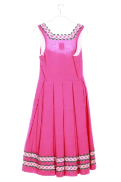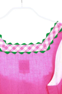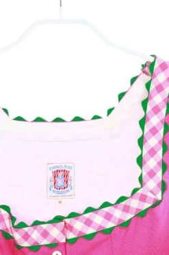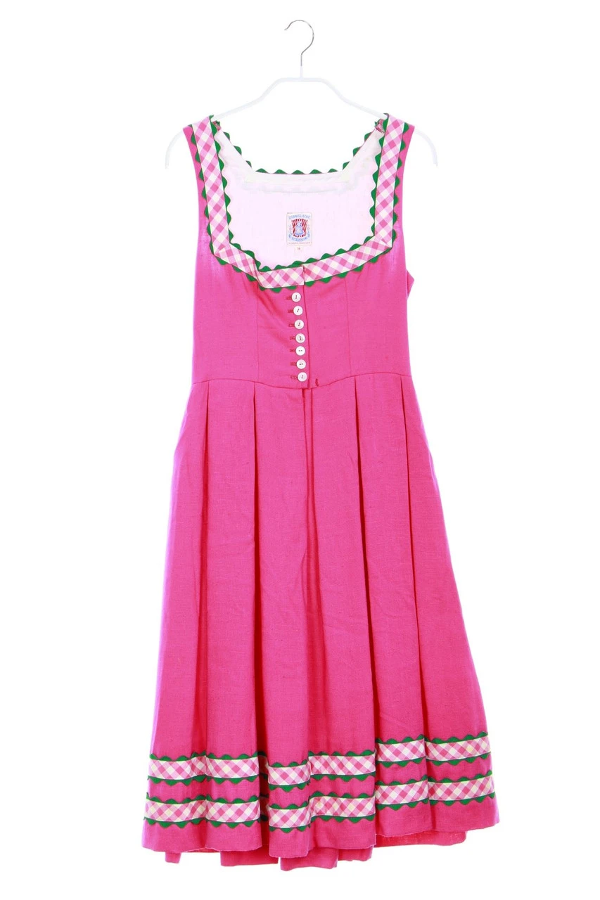 Schönes Dirndl-Kleid aus Leinen mit Karo-Borten-Applikationen sowie einem Knopfverschluss und einem angesetzten Falten-Rock