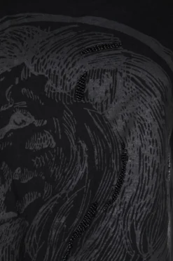 Cooles Print-Shirt mit Löwenkopf, Perlen und Faux Leather-Applikation an den Schultern