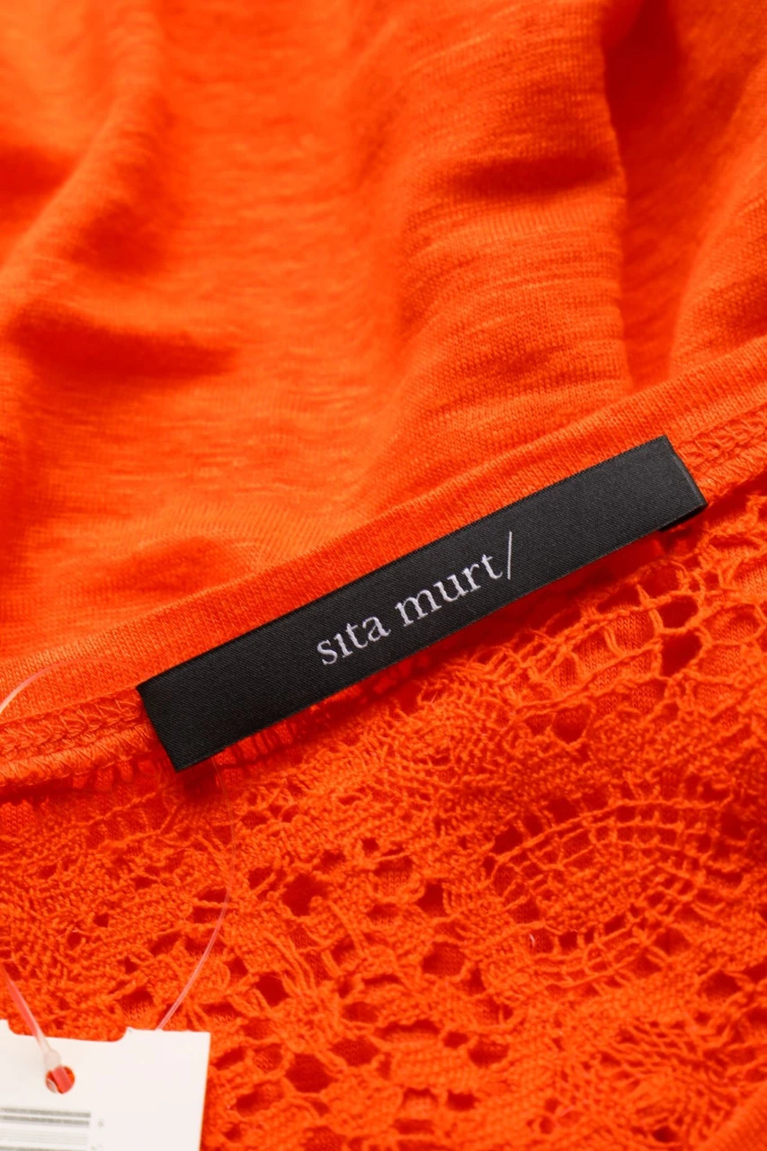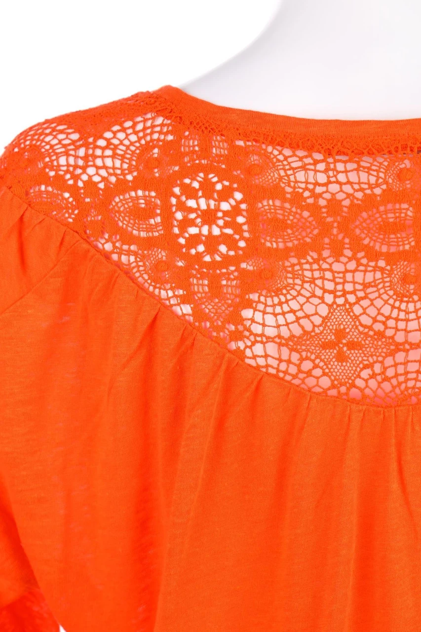 Shirt aus Leinen-Jersey mit Spitzen-Einsätzen, weitem Ausschnitt und angeschnittenen Ärmeln