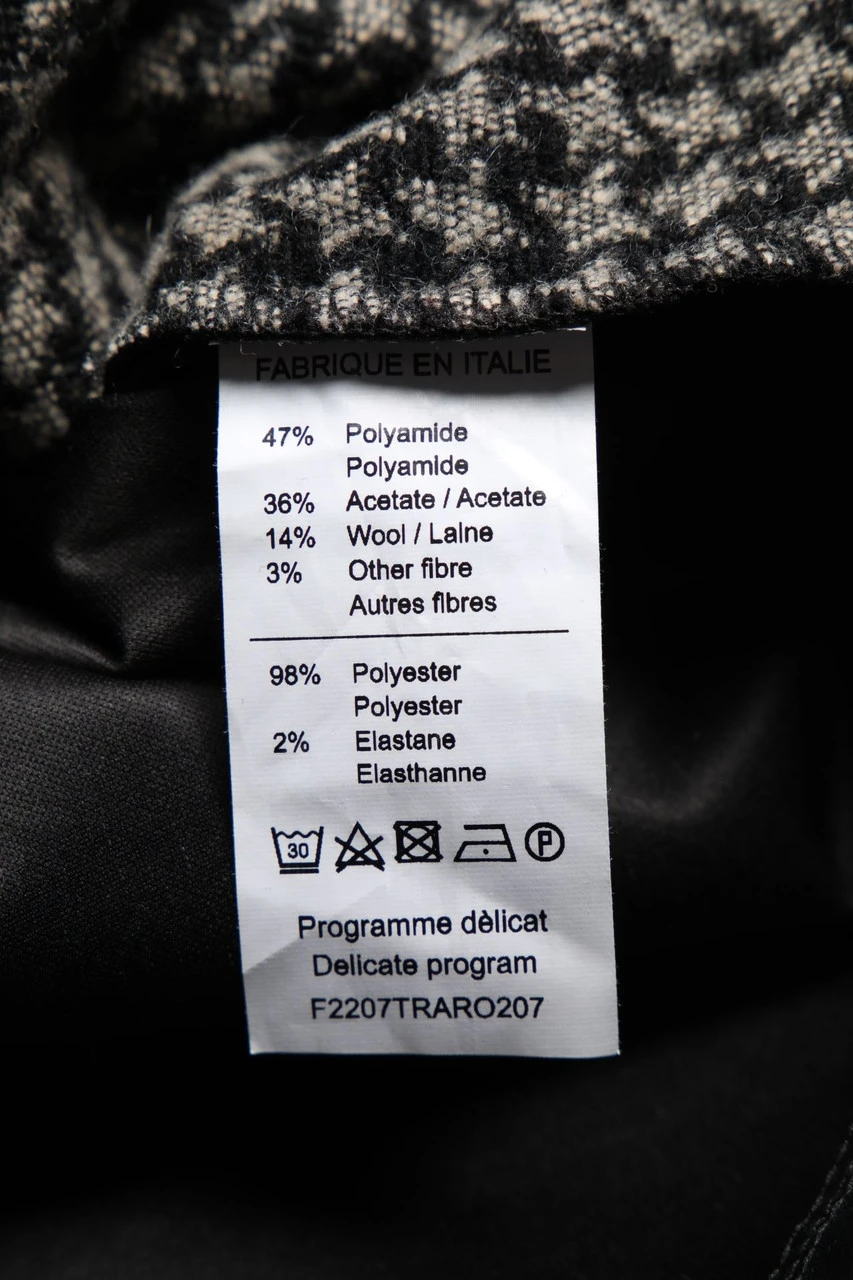 Obermaterial: 47% Polyamid, 36% Acetat, 14% Wolle, 3% sonstige Fasern